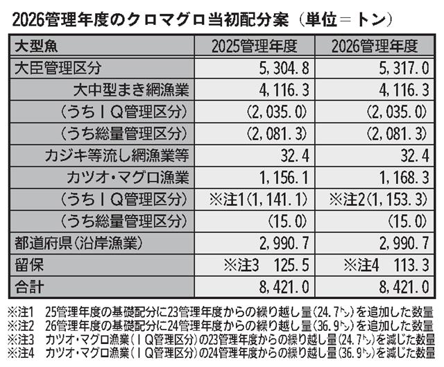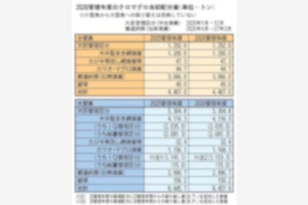 水産庁は26日、都内で2026管理年度のクロマグロ漁獲可能量(TAC)設定に関する意見交換会を開催した。12月1日に始まる中西部太平洋まぐろ類委員会(WCPFC)年次会合ではクロマグロの増枠に関す…