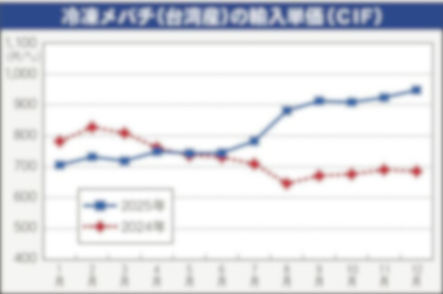 豊洲市場における1月の冷凍大バチ(40キロ上)上場本数は6060本で、前年同月から36%も減少した。長引く円安で操業コストが合わず、昨年の下半期に海外船の出漁が激減した影響が表れている。数量が最も…