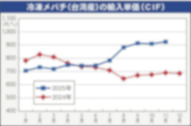 財務省の貿易統計によると、マグロ類11月の輸入実績は生鮮が188トン(前年同月比31%減)、3億4300万円(23%減)、冷凍物は1万3609トン(19%減)、158億5700万円(6%減)、加工…