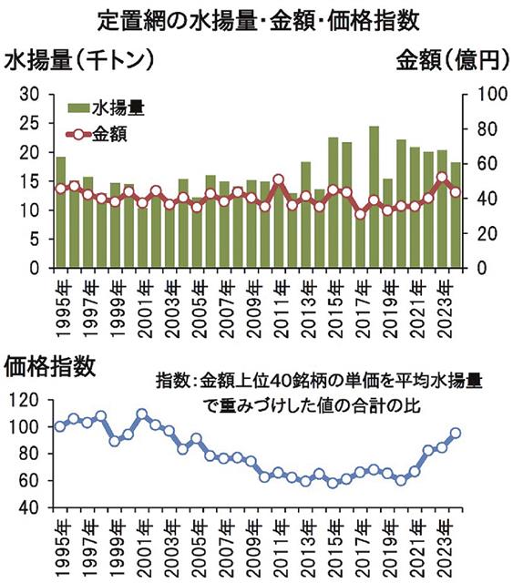 石川県は3日、能登半島地震に見舞われた2024年の県内主要港の定置網における年間水揚量と水揚金額をまとめた。海底の隆起で能登半島の外浦(北・西岸、日本海側)にある定置網が操業再開できない逆風下にあ…
