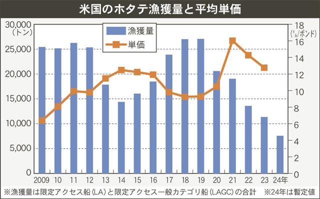 米国大西洋沿岸のホタテ漁は今シーズン(2025年4月~26年3月)も低水準の水揚げ見込みとなっている。資源状況を踏まえて設定される年間漁獲予想(APL)は約8200トン(むき身換算)で、この通りな…