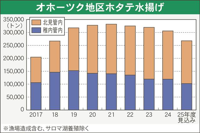 今期の水揚げ計画(漁場造成含む、サロマ湖養殖除く)は、北部の稚内地区が前期実績比14%減の10万2150トン、南部の北見地区が11%減の16万5660トン、合計で12%減の26万7810トン。オホ…