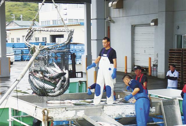 石巻魚市場でAI魚種選別機の実証試験 水産関係者が見学