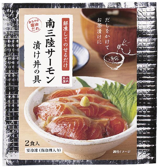 宮城・南三陸町の水産加工・(株)ヤマウチは人気の「漬け丼の具」シリーズを紹介。解凍してご飯に乗せるだけで本格的な味わいが楽しめる商品で、催事販売や自社通販などで販売を伸ばしている。 シリーズは全5…