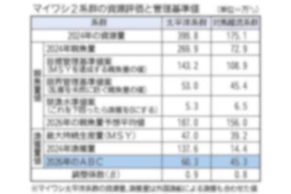 水産庁などが公表した7種9系群の2025年度資源評価結果のうち、マイワシ以外で漁獲可能量(TAC)管理対象魚種のマアジ対馬暖流系群は、資源量や親魚量が全体的に下方修正された。そのため親魚量は、最大…