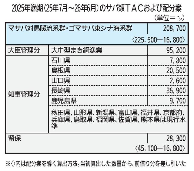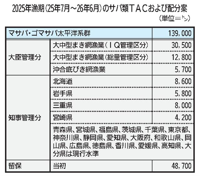 水産庁は17日、マサバ・ゴマサバ対馬暖流系群の漁獲可能量(TAC)設定に関する意見交換会を福岡市内で開催した。両魚種を合わせた2025管理年度(7月~26年6月)当初のTAC案は22・55万トンで…