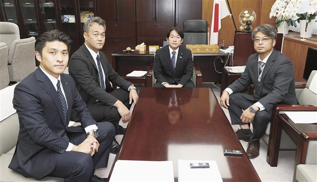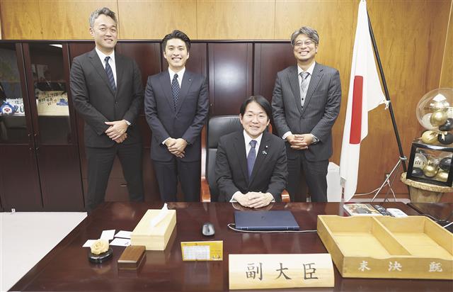 (右から)山下大臣、阿部会長、鈴木(健)社長、鈴木(智)社長 昨年は記録的猛暑や高海水温によりもたらされた海洋環境の変化による水揚げの不安定化、国際情勢の不安定化や円安長期化による物価高、人件費・原…