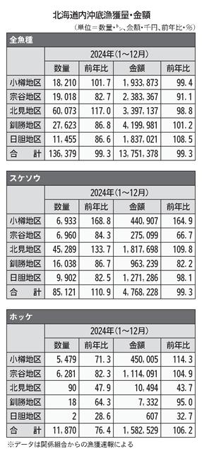 全国すり身協会(北海道網走市、会員5社)が発表した3月の北海道産陸上スリ身生産量は、網走沿岸で底びき網漁が解禁となる中、主力スケソウの水揚げが回復して、2か月ぶりに生産量が出荷量を上回った。(別表…