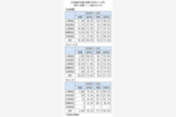 全国すり身協会(北海道網走市、会員5社)が発表した6月の北海道産陸上スリ身生産量は、若干スケソウ漁の勢いが低下したが前月までまとまっていたことで、スケソウスリ身を中心に前年を上回った。(別表参照)…