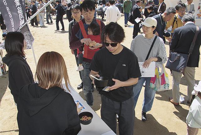 【仙台】JFみやぎ(宮城・石巻市、寺沢春彦組合長)は3日、仙台市中心街にある錦町公園で開発中の新商品「みやぎサーモンと牡蠣のバターピラフ」をお披露目した。大型連休の名物イベント「海のグルメフェステ…