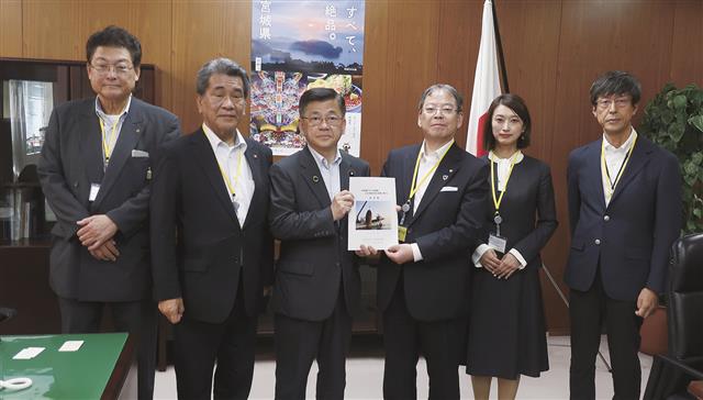 全国水産都市三団体連絡協議会の久保俊幸会長らは18日、農林水産省を訪れ、庄司賢一農林水産大臣政務官に水産業の安定供給などを図る政策要望書を手渡した。中野弘道副会長、藤川優里副会長、事務局を務める全…