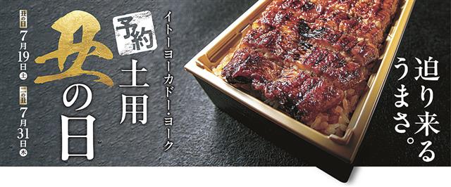 (株)イトーヨーカ堂(山本哲也社長)は23日から、「イトーヨーカドー・ヨーク土用丑の日」の予約受け付けを開始した。静岡県浜名湖産のウナギを使用した“超特大うな重”を数量限定の特別商品として用意する…
