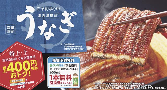 大手コンビニエンスストアの(株)ファミリーマート(細見研介社長)は5月29日、土用丑の日8商品の予約受け付けを開始した。鹿児島県産ウナギ使用の本格派から、1000円台という手頃な価格の商品まで幅広…