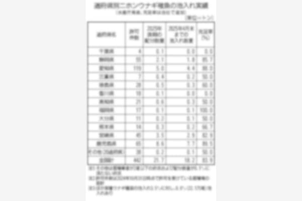 水産庁は6日、ニホンウナギ稚魚および異種ウナギの2025年漁期(24年11月~25年10月)における4月末時点の池入れ数を公表した。(1面、別表参照) 実質の最終集計で、4月に1・4トンを上積みし…