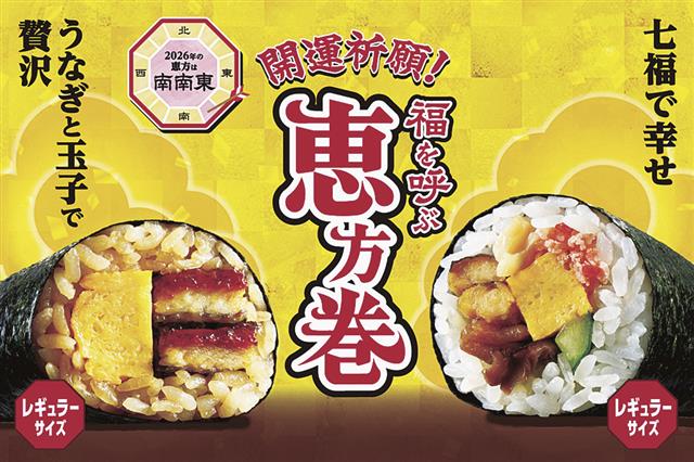 大手コンビニの(株)セブンーイレブン・ジャパン(東京・千代田区、阿久津知洋社長)は22日、節分の日に合わせて発売する恵方巻7商品と惣菜3商品、スイーツ2商品の計12商品の予約受け付けを始めた。ウナ…